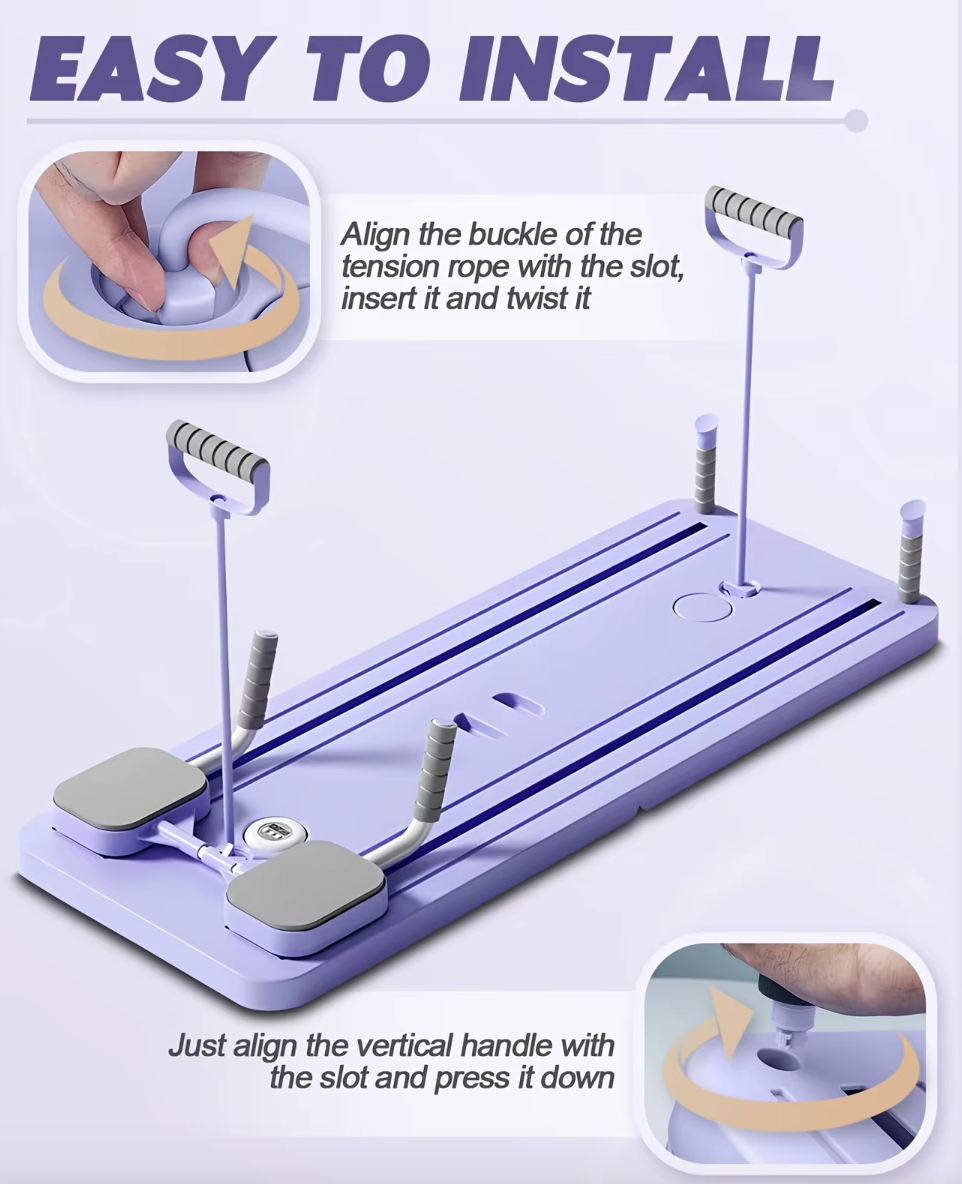 Transform your home workouts with our Pilates Reformer Board Set with Timer. This ultimate multi-purpose fitness tool is designed to strengthen your core, tone your abs, and enhance full-body muscle engagement.